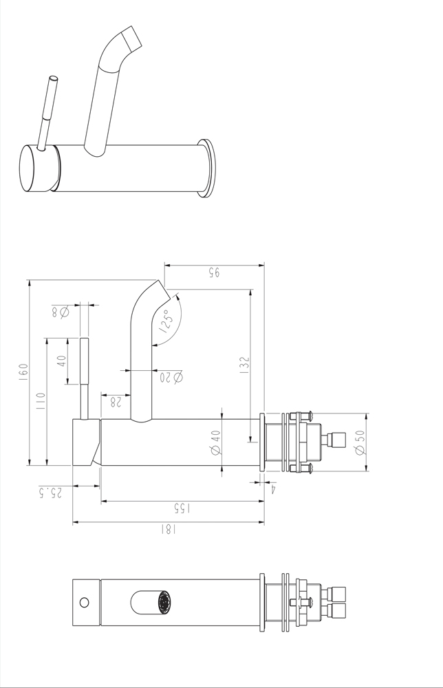 ברז לכיור רחצה NOA נמוך רוז גולד מוברש PVD נירוסטה