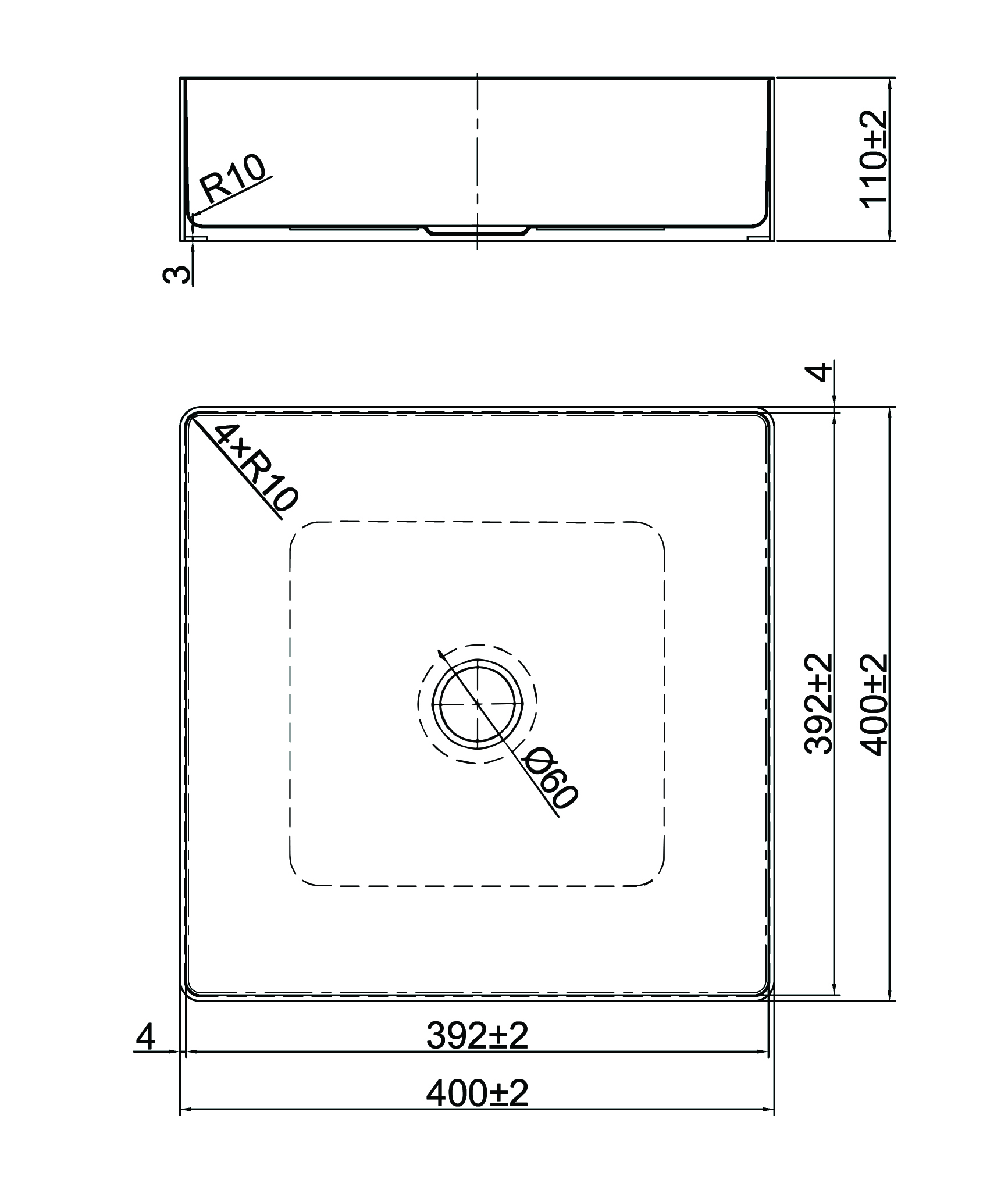 כיור רחצה מונח STEN 38*38*10 מוברש נירוסטה עגול