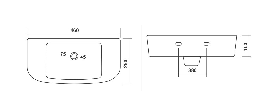 כיור רחצה מונח תלוי GUY 47*27*115 לבן מבריק חרס מלבני עם חור לברז